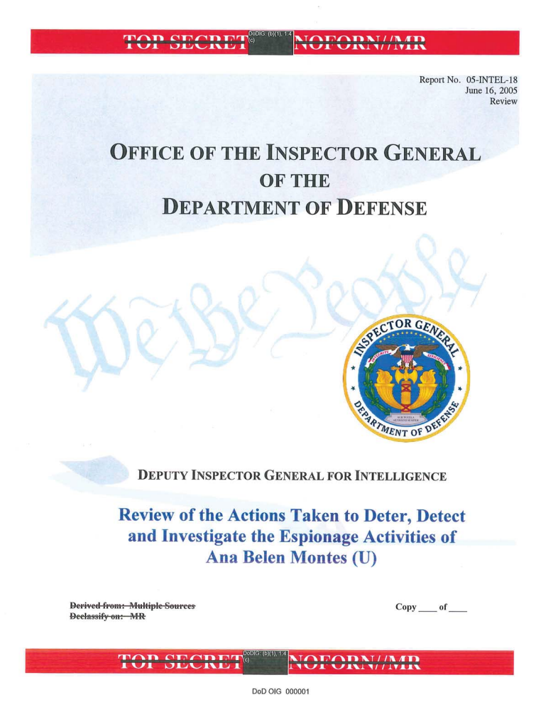 The Office of the Inspector General for the Defense Department completed a review of the actions that were taken to “deter, detect, and investigate the espionage activities” of Ana Montes. The review from 2005 detailed how Montes was different from typical spies.