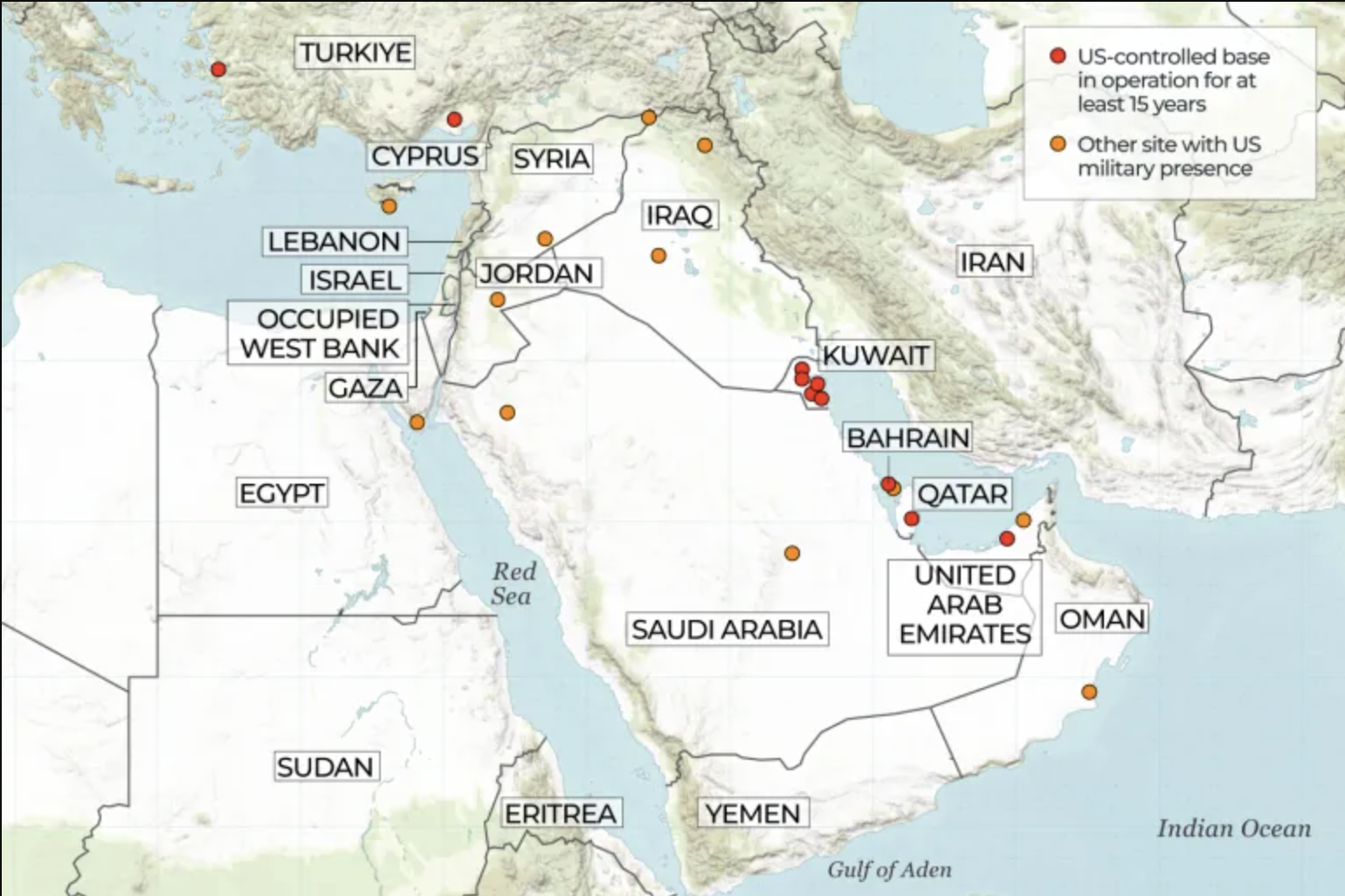 Each of the mentioned Gulf states, like Kuwait, are clients of the U.S. military.